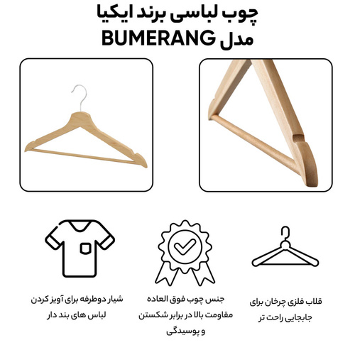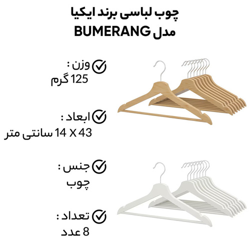 چوب لباسی ایکیا مدل Bumerang - بسته 8 عددی