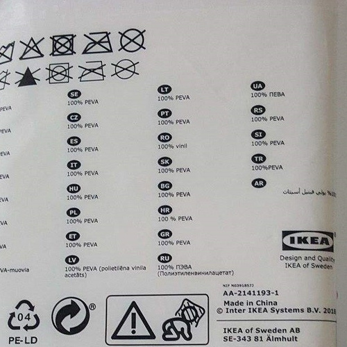 انتخاب رنگ سفید برای این پرده حمام ایکیا توسط طراح آن حس تمیزی غیر قابل مقایسه ای نسبت به سایر طرح ها و رنگ ها برای فرد ایجاد میکند. پیشنهاد می شود که در دیزاین حمام خود در صورت انتخاب این محصول از حوله سفید نیز استفاده کنید تا حس پاکیزگی حمامتان دوچندان شود. جنس این محصول 100 درصد PEVA است که نسبت به پلیاستر و PVC که در پرده های مشابه مورد استفاده قرار میگیرد کیفیت بسیار بالاتری دارد و اثرات نامطلوب PVC و پلیاستر را ندارد.